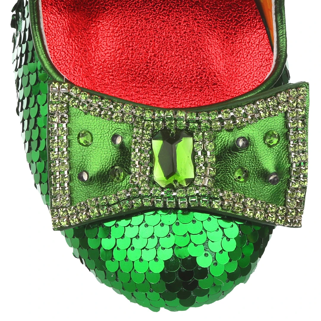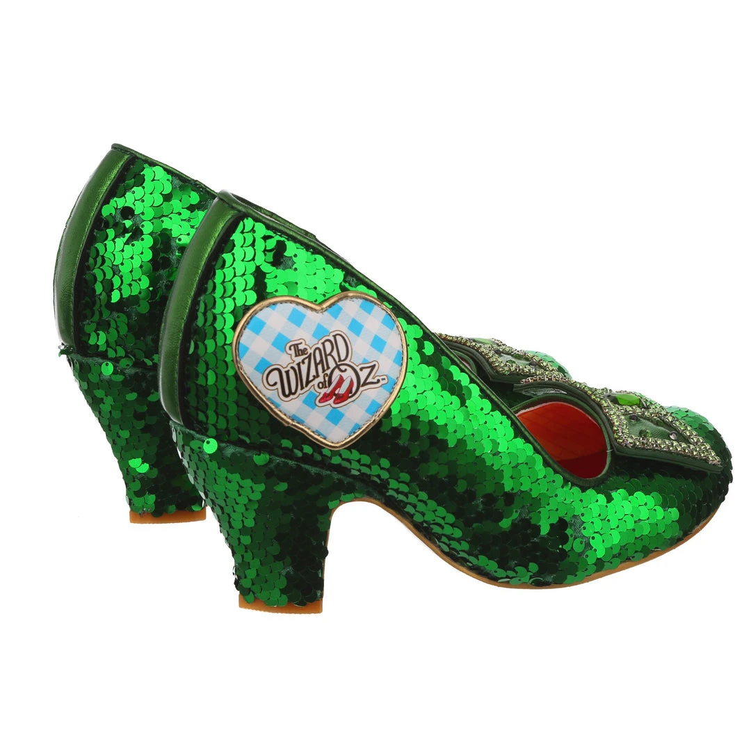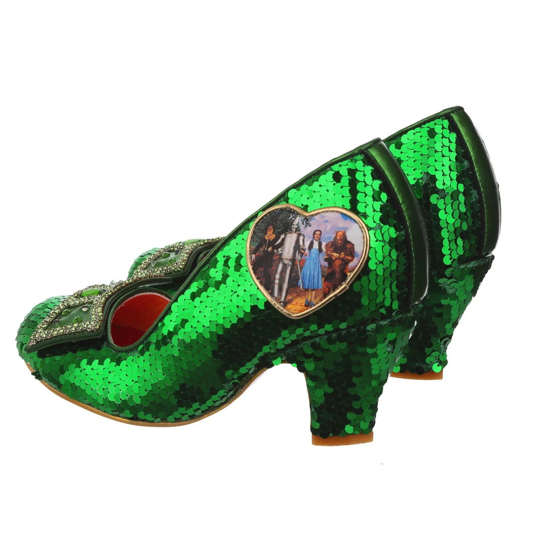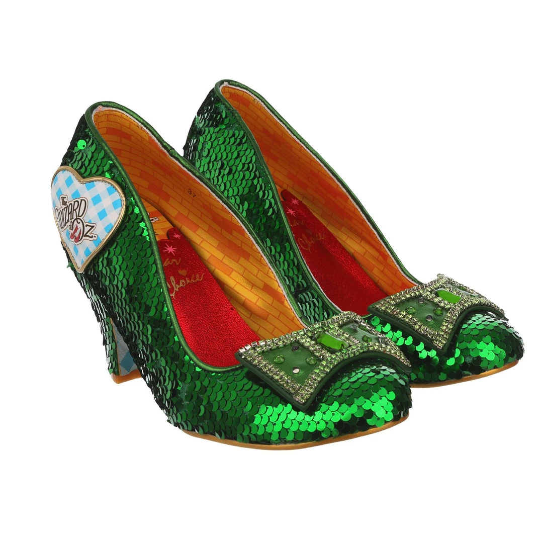 Feel like a citizen of the Emerald City™ in these snazzy shoes! With all the glamour of the Ruby Slipper™, these gorgeous green glories are encrusted with shimmering emerald sequins, a light up LED bow on the toe, and adorable hearts on the back featuring the Wizard of Oz™ logo and a movie still. So get skipping and add these lovelies into your life today!