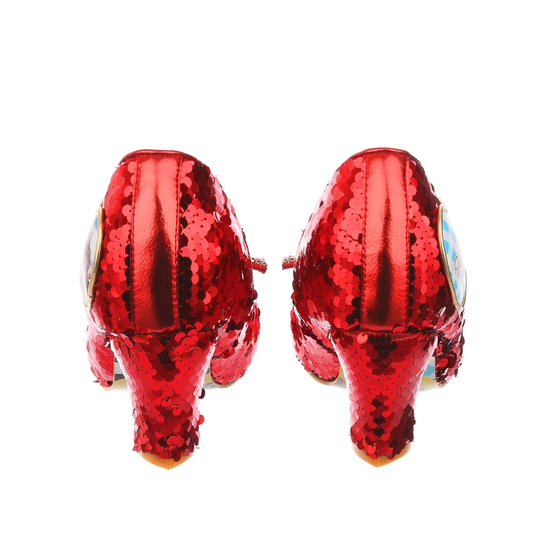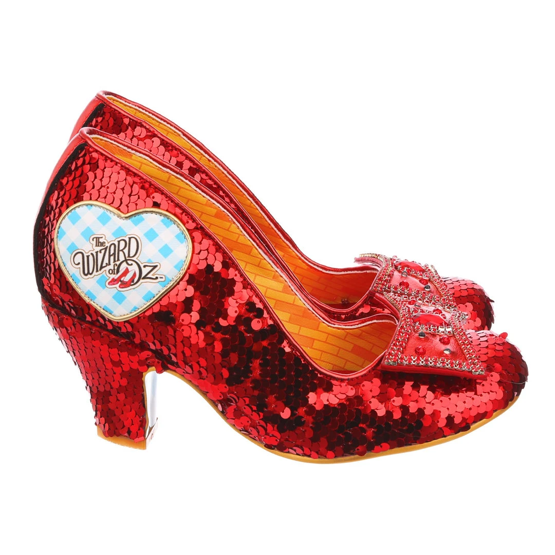 Click your heels three times and think of home! Oh you wanted dream shoes? We have dream shoes! Live your Dorothy™ fantasy in those perfect ruby slippers™. Glistening in ruby sequins, with a bow that shimmers and sparkles with LED flashing lights, these wonders are sure to make you feel like the main character of your own adventure. The gingham hearts on each heel have the Wizard of Oz™ logo on one side and a heartwarming still from the movie! So what are you waiting for? Add them to your life (and dreams) today.